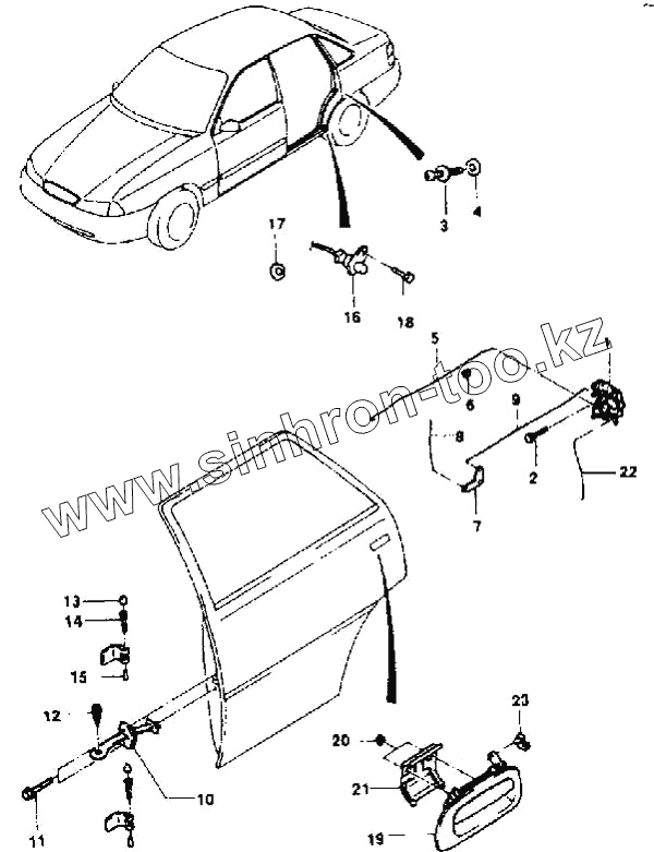 Каталог запасных частей к технике: Daewoo Nexia. Замок задней двери