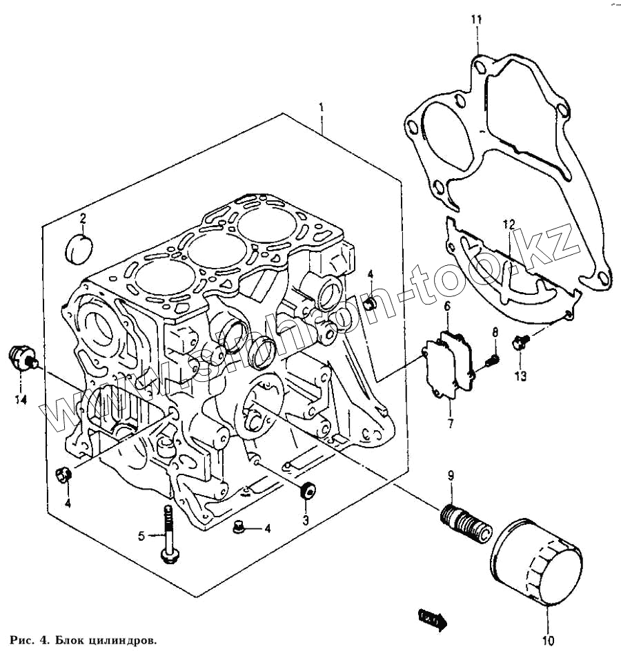 Каталог запасных частей к технике: Daewoo Tico. Блок цилиндров