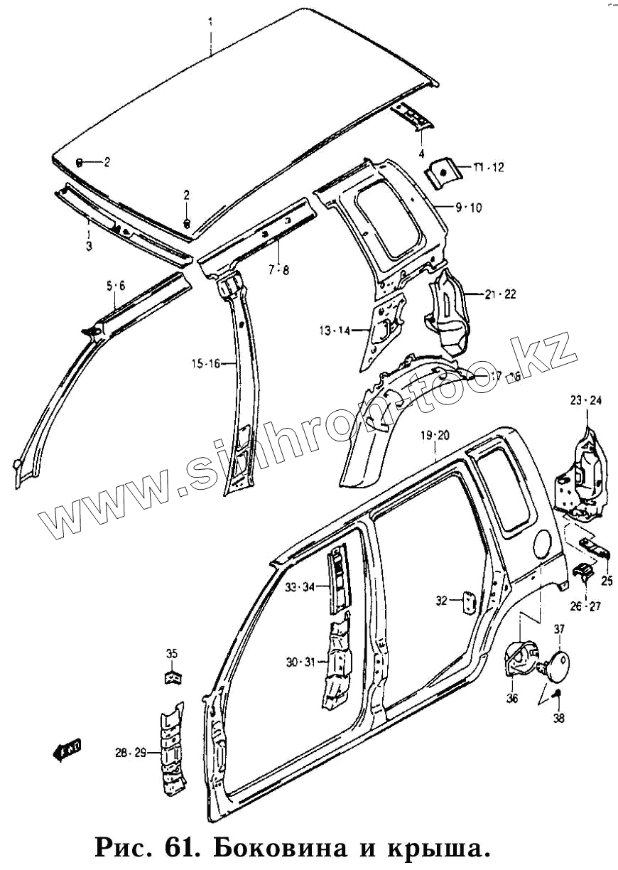 Каталог запасных частей к технике: Daewoo Tico. Боковина и крыша