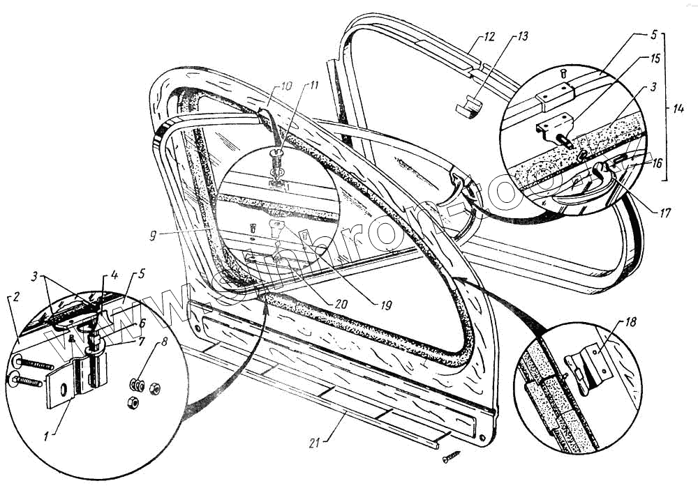 | 11 | 32-5403058 | Винт М6х1х21,5 крепления поворотного стекла окна боковины | |