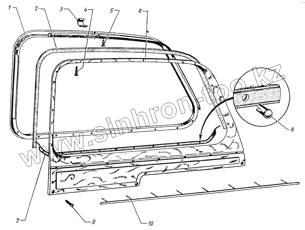 Каталог запасных частей к технике: ГАЗ-12 (ЗИМ). Окно задней двери