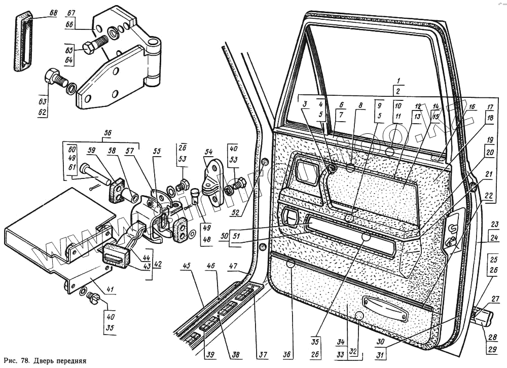 Каталог запасных частей к технике: ГАЗ-14 (Чайка). Дверь передняя