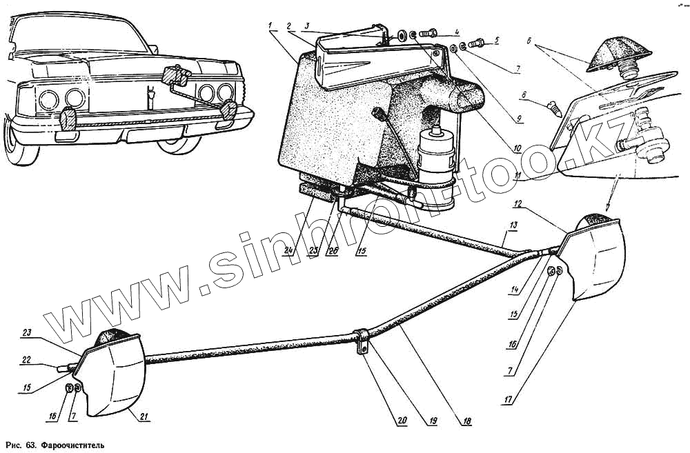 Каталог запасных частей к технике: ГАЗ-14 (Чайка). Фароочиститель