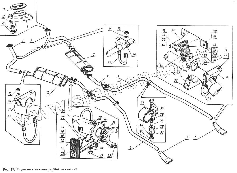 Каталог запасных частей к технике: ГАЗ-14 (Чайка). Глушитель выхлопа, трубы выхлопные
