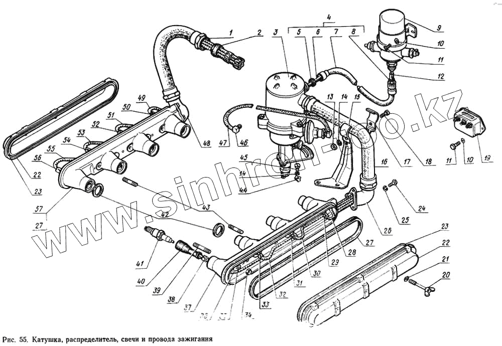 Каталог запасных частей к технике: ГАЗ-14 (Чайка). Катушка, распределитель, свечи и привод зажигания