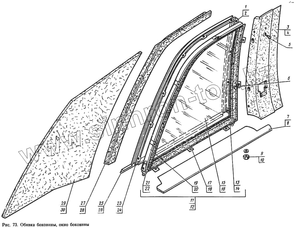 Каталог запасных частей к технике: ГАЗ-14 (Чайка). Обивка боковины, окно боковины