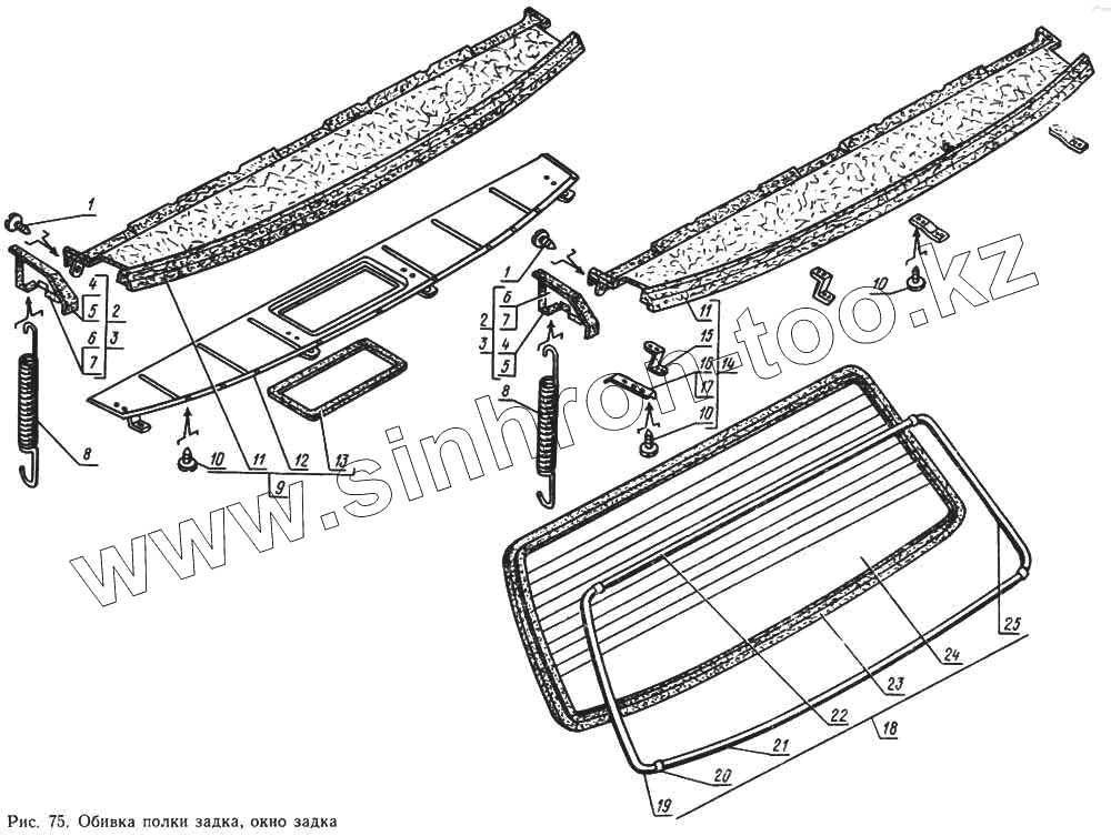 Каталог запасных частей к технике: ГАЗ-14 (Чайка). Обивка полки задка, окно задка