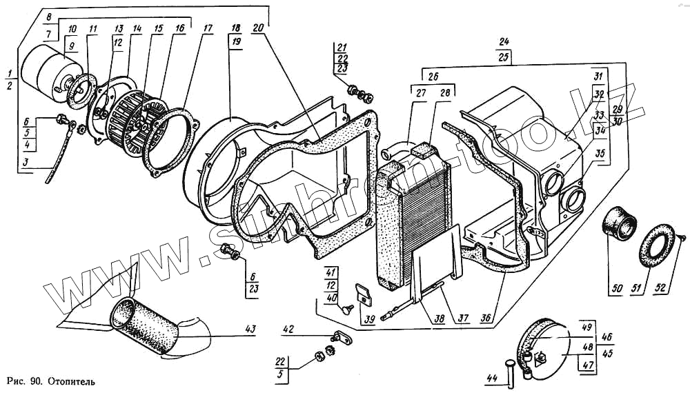 Каталог запасных частей к технике: ГАЗ-14 (Чайка). Отопитель