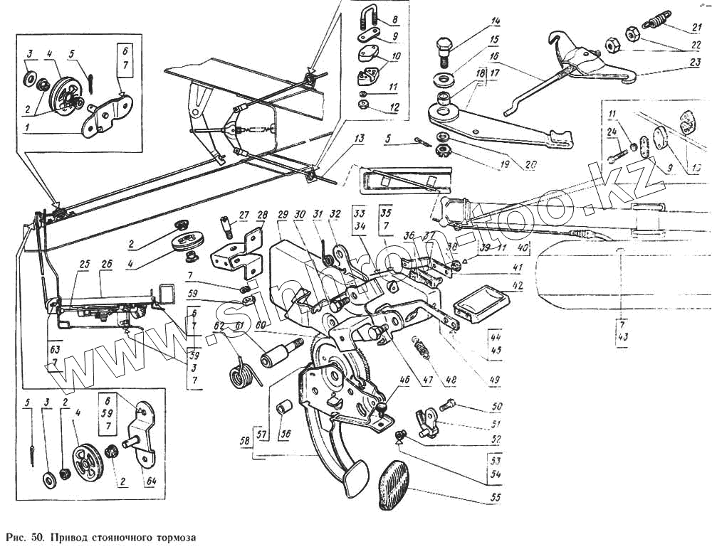 Каталог запасных частей к технике: ГАЗ-14 (Чайка). Привод стояночного тормоза