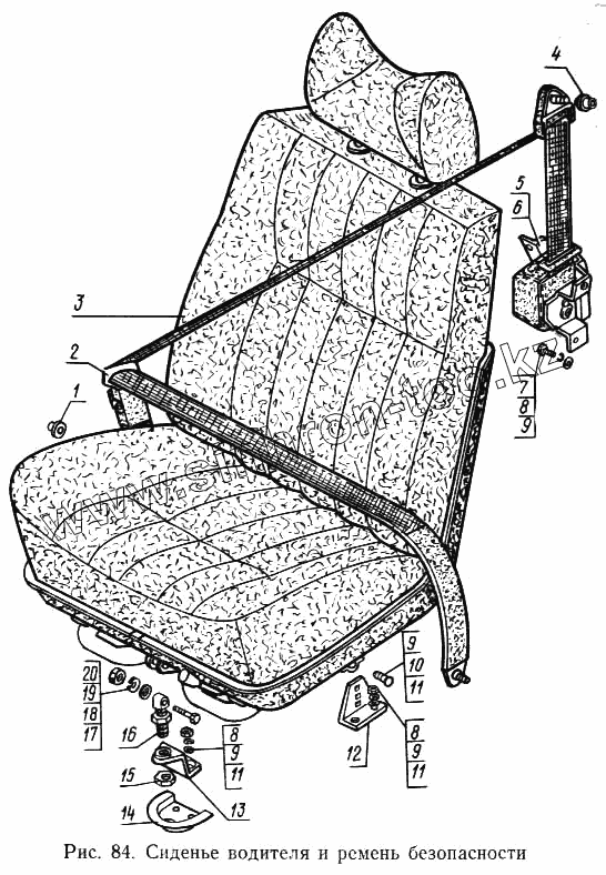 Каталог запасных частей к технике: ГАЗ-14 (Чайка). Сиденье водителя и ремень безопасности