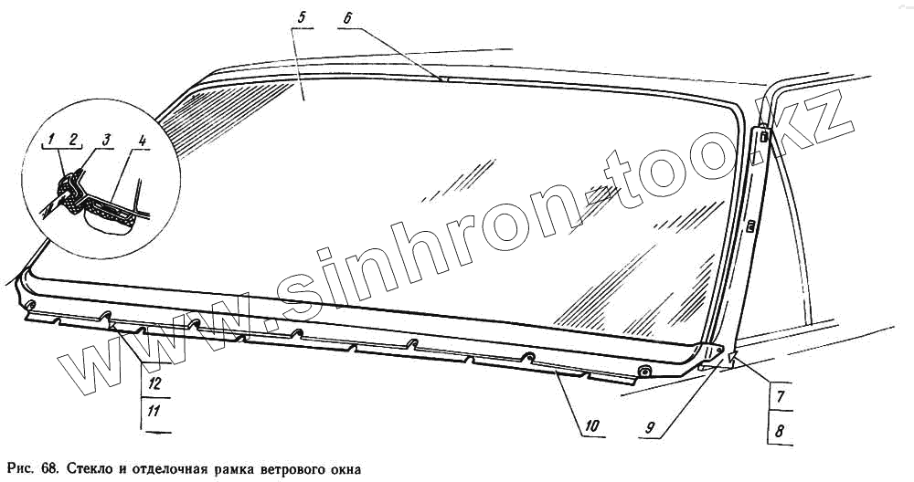 Каталог запасных частей к технике: ГАЗ-14 (Чайка). Стекло и отделочная рамка ветрового окна