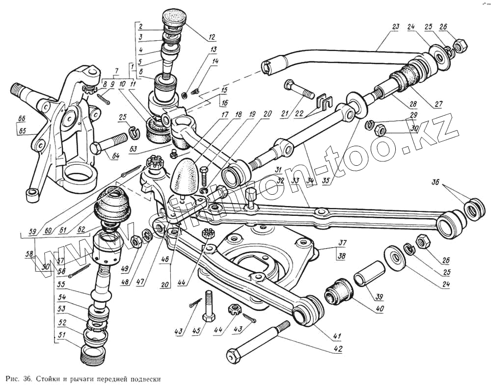 Каталог запасных частей к технике: ГАЗ-14 (Чайка). Стойки и рычаги передней подвески