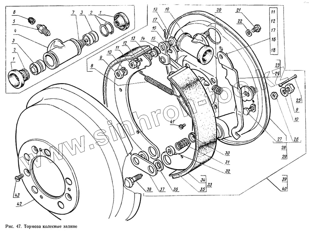 Каталог запасных частей к технике: ГАЗ-14 (Чайка). Тормоза колесные задние