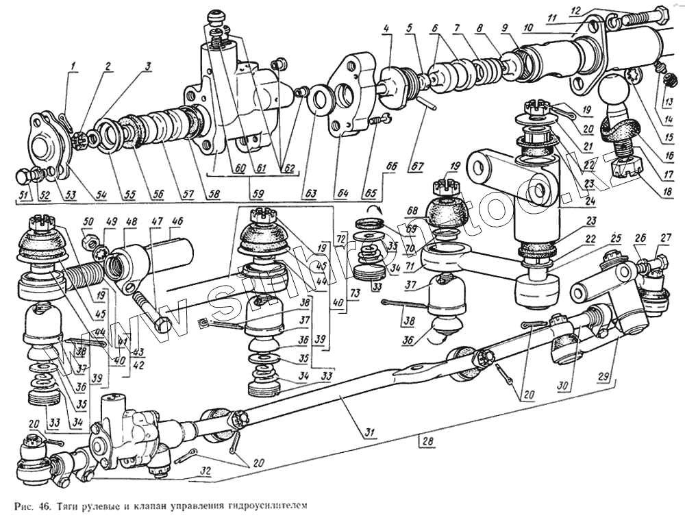 Каталог запасных частей к технике: ГАЗ-14 (Чайка). Тяги рулевые и клапан управления гидроусилителем