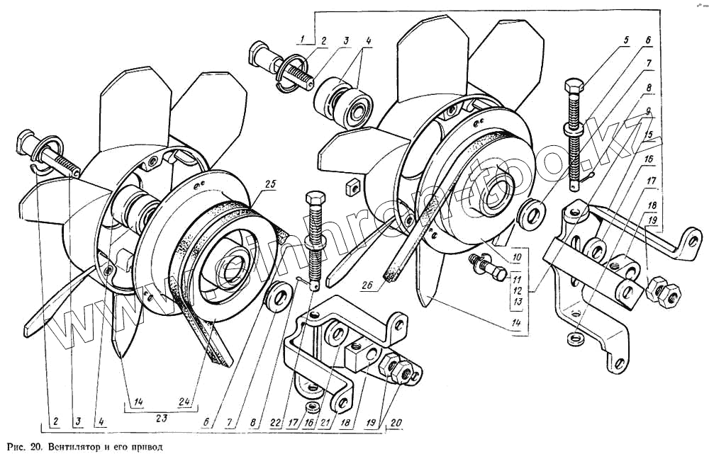 Каталог запасных частей к технике: ГАЗ-14 (Чайка). Вентилятор и его привод