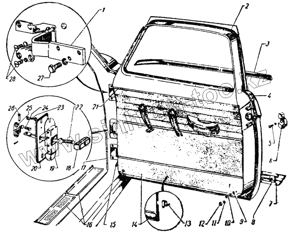 Каталог запасных частей к технике: ГАЗ-21. Дверь передняя