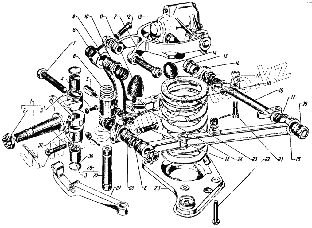 Каталог запасных частей к технике: ГАЗ-21. Передняя подвеска в сборе