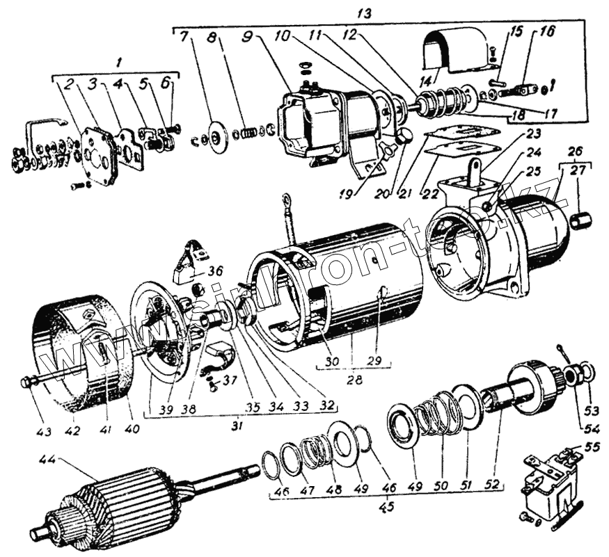 | 55 | РС24-Б | Реле включения стартера в сборе |