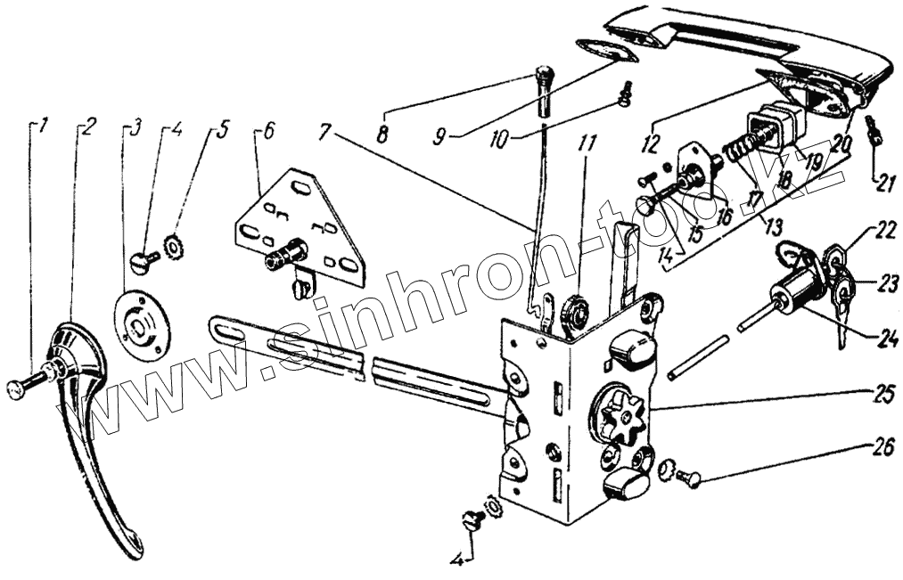 Каталог запасных частей к технике: ГАЗ-21. Замок и ручки передней двери