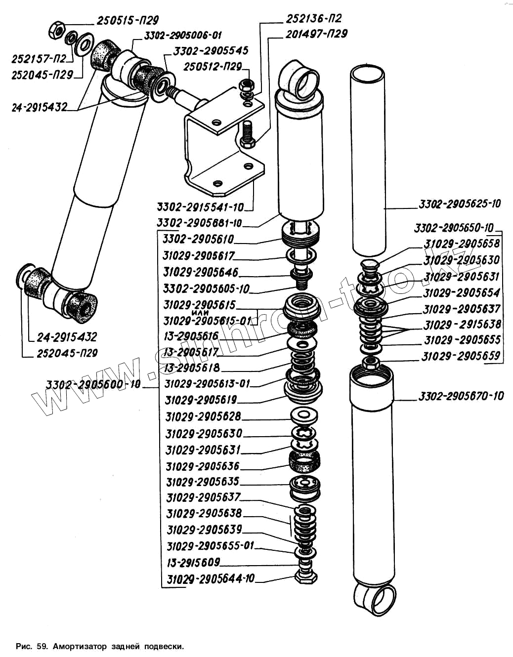 Каталог запасных частей к технике: ГАЗ-2217 (Соболь). Амортизатор задней подвески