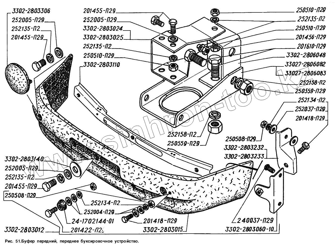 Каталог запасных частей к технике: ГАЗ-2217 (Соболь). Буфер передний, переднее буксирное устройство