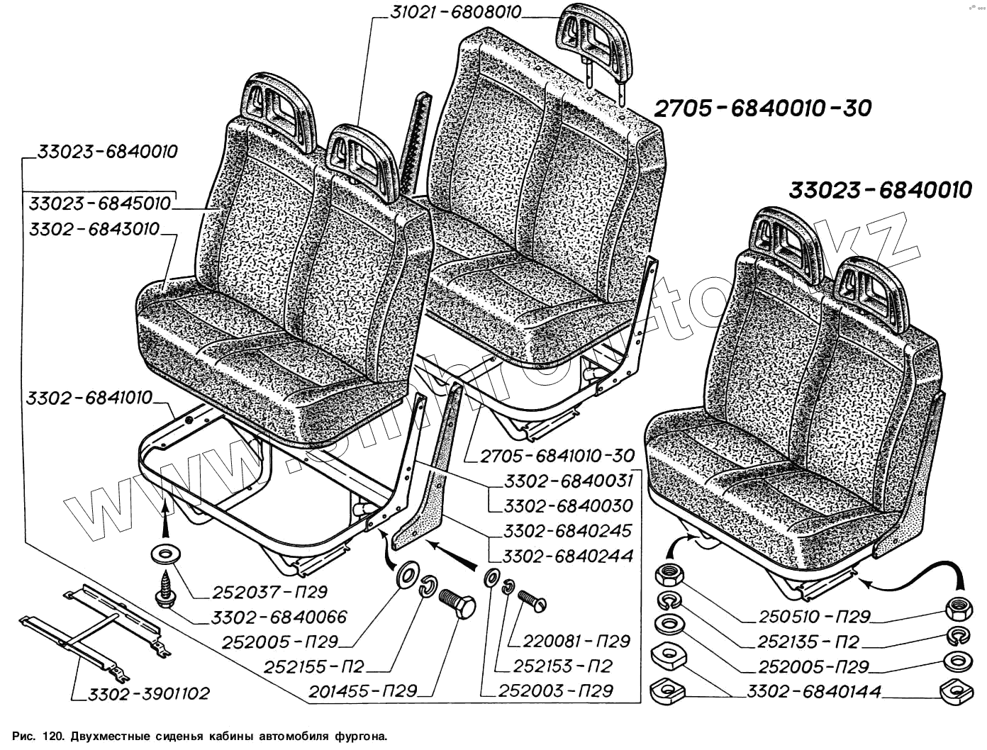 Каталог запасных частей к технике: ГАЗ-2217 (Соболь). Двухместные сиденья кабины автомобиля-фургона