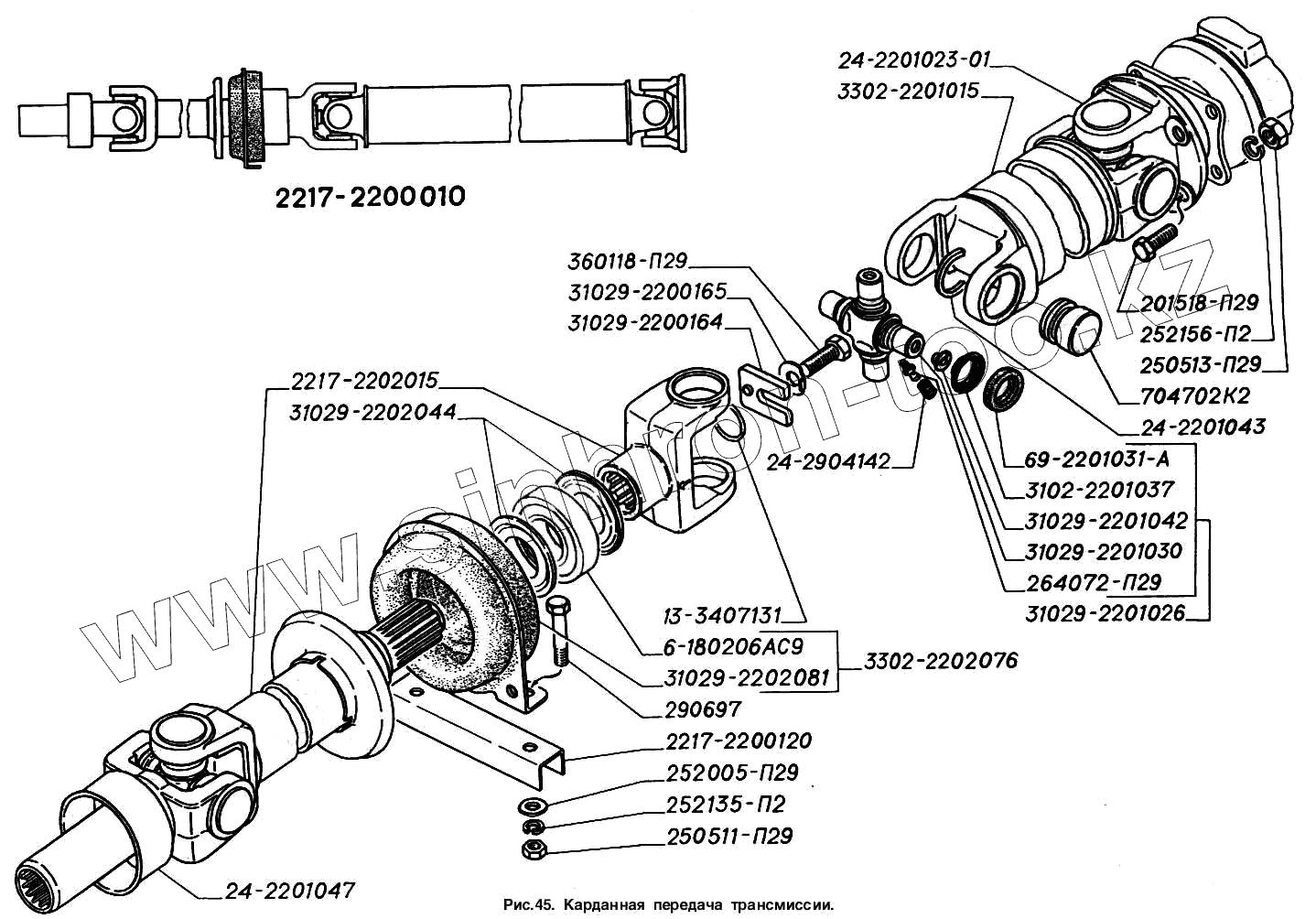 Каталог запасных частей к технике: ГАЗ-2217 (Соболь). Карданная передача трансмиссии