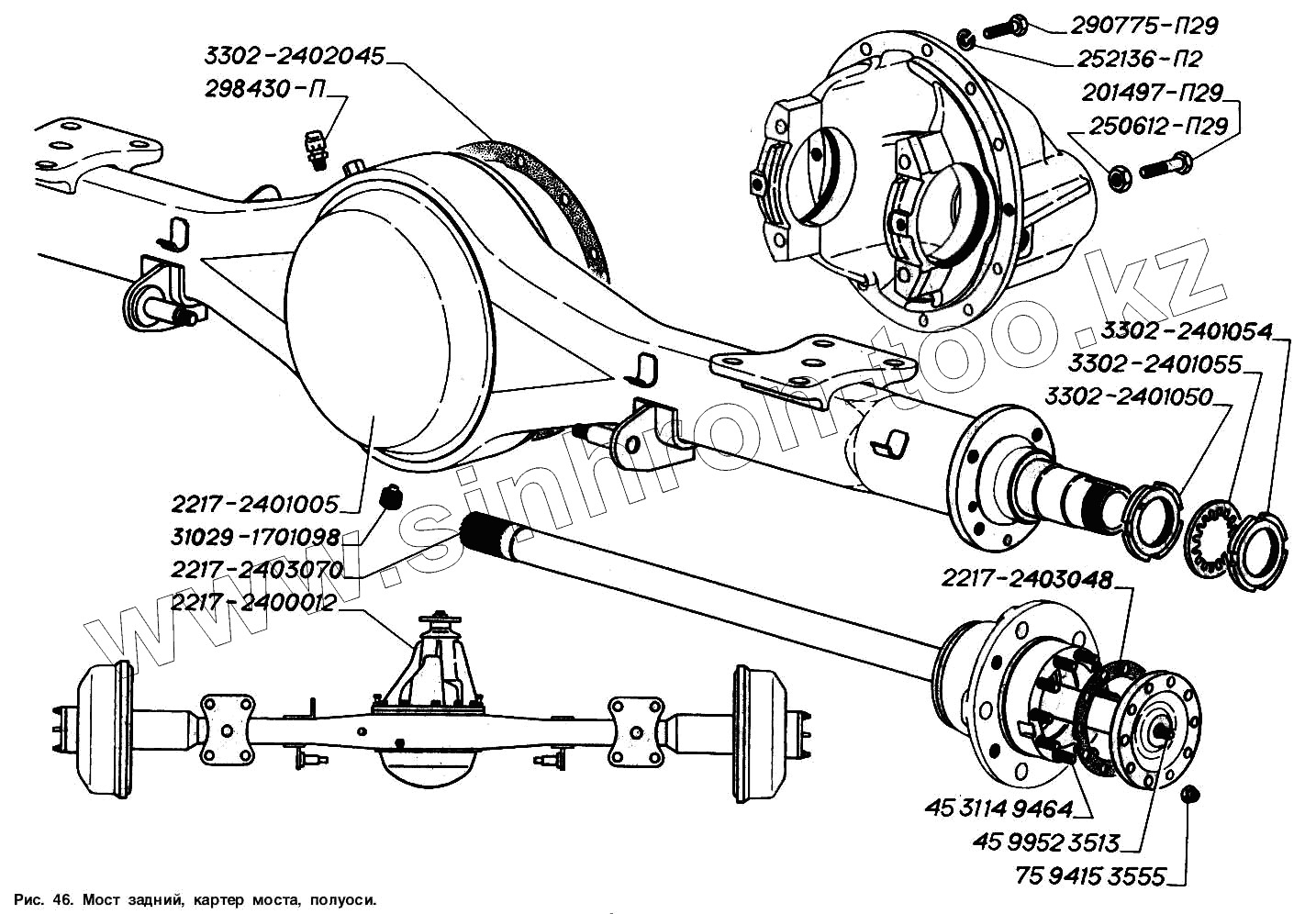 Каталог запасных частей к технике: ГАЗ-2217 (Соболь). Мост задний, картер моста, полуоси