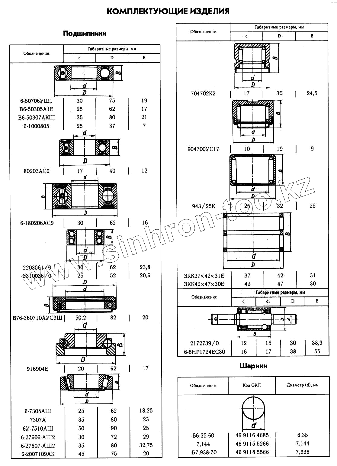 Каталог запасных частей к технике: ГАЗ-2217 (Соболь). Подшипники, Шарики