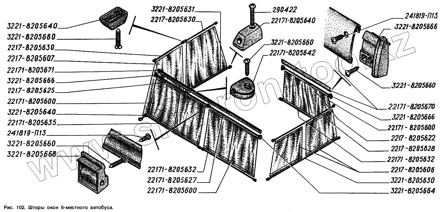 Каталог запасных частей к технике: ГАЗ-2217 (Соболь). Шторы окон 6-местного автобуса