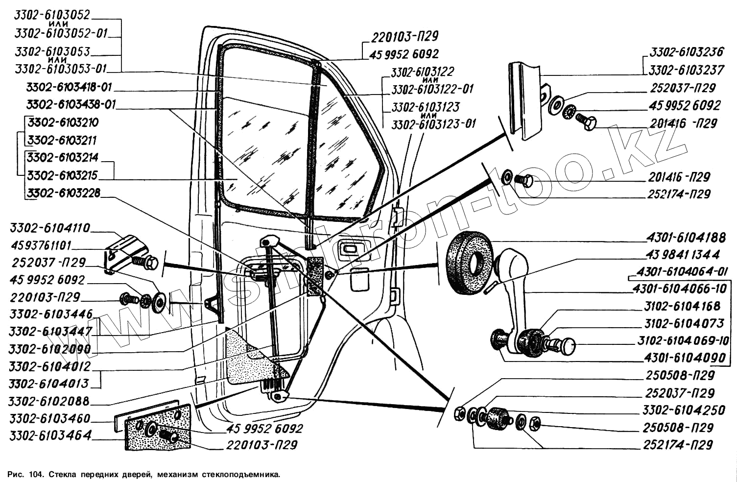 Каталог запасных частей к технике: ГАЗ-2217 (Соболь). Стекла передних дверей, механизм стеклоподъемника