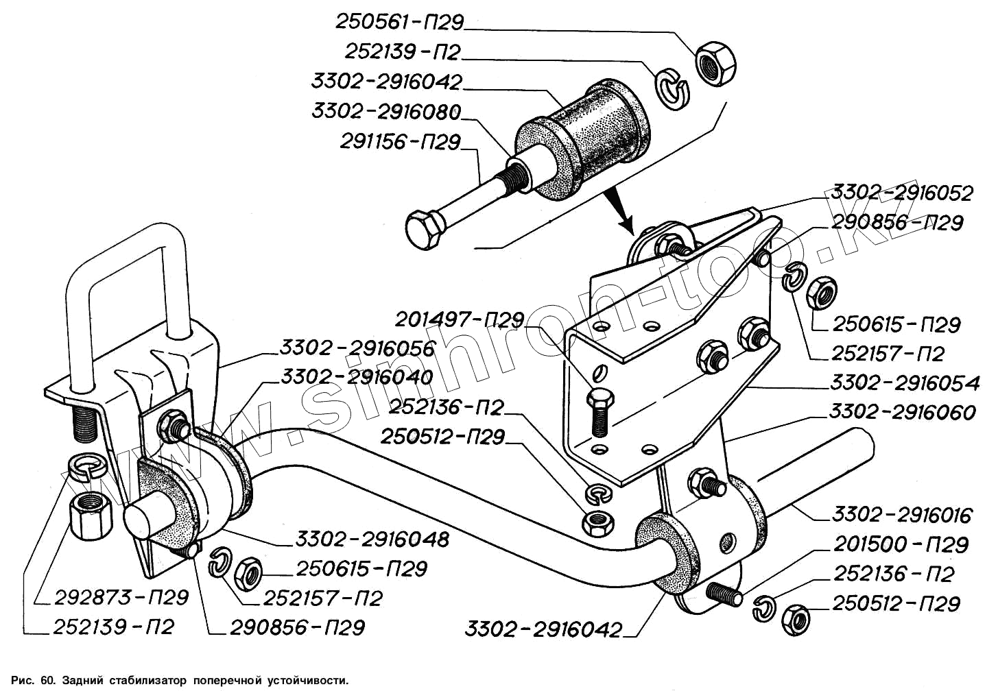 Каталог запасных частей к технике: ГАЗ-2217 (Соболь). Задний стабилизатор поперечной устойчивости