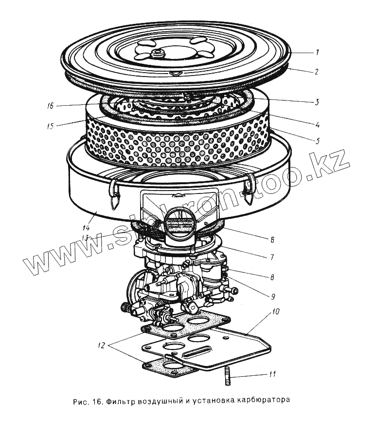 Каталог запасных частей к технике: ГАЗ-24-10. Фильтр воздушный и установка карбюратора