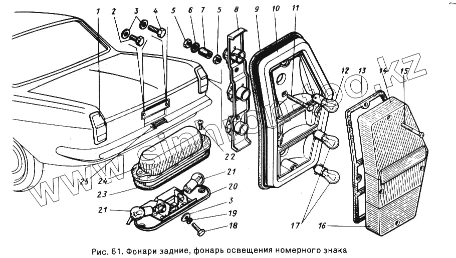 Каталог запасных частей к технике: ГАЗ-24-10. Фонари задние, фонарь освещения номерного знака