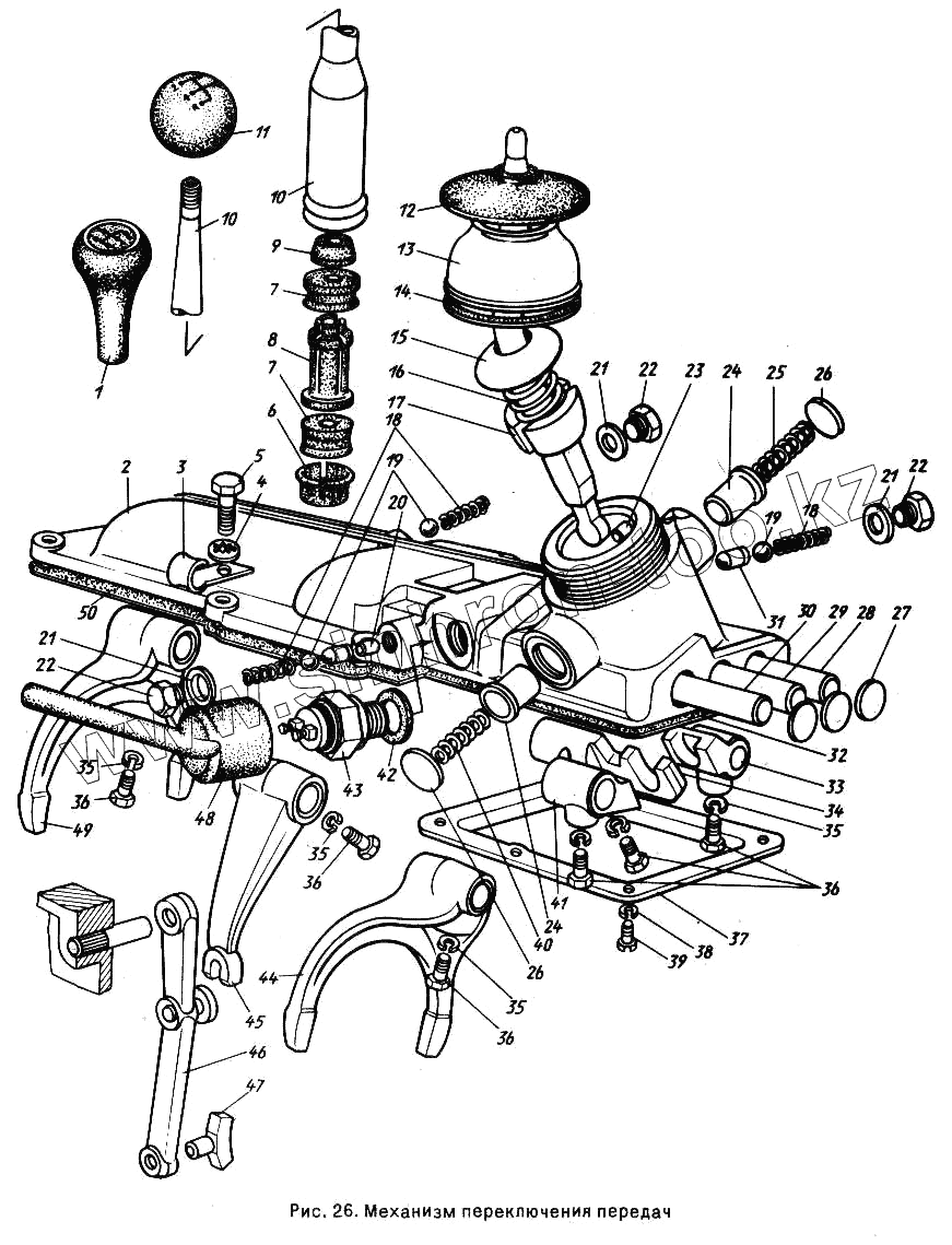 Каталог запасных частей к технике: ГАЗ-24-10. Механизм переключения передач
