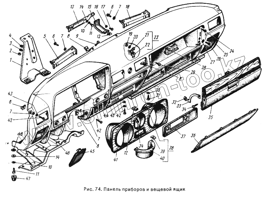 Каталог запасных частей к технике: ГАЗ-24-10. Панель приборов и вещевой ящик