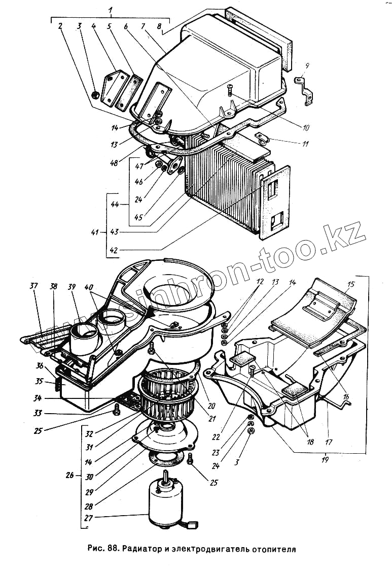Каталог запасных частей к технике: ГАЗ-24-10. Радиатор и электродвигатель отопителя
