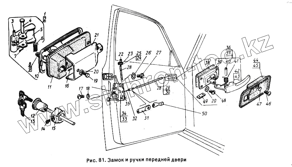 Каталог запасных частей к технике: ГАЗ-24-10. Замок и ручки передней двери