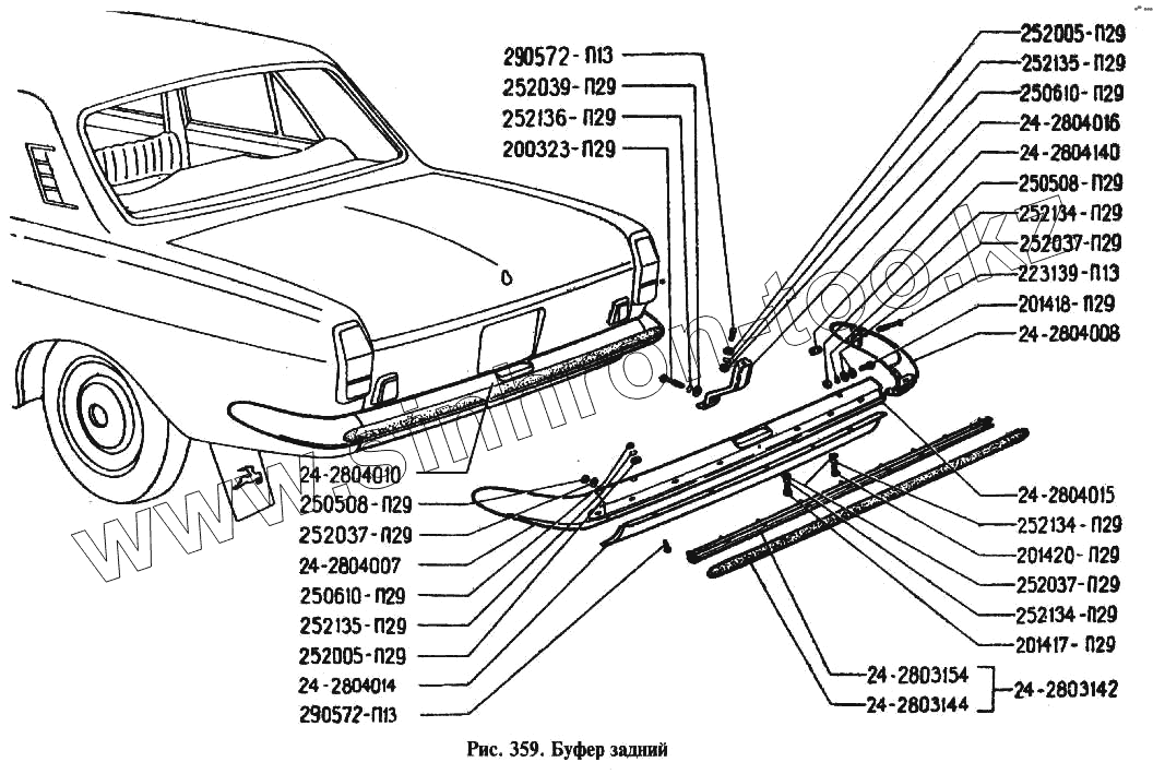 Каталог запасных частей к технике: ГАЗ-24. Буфер задний