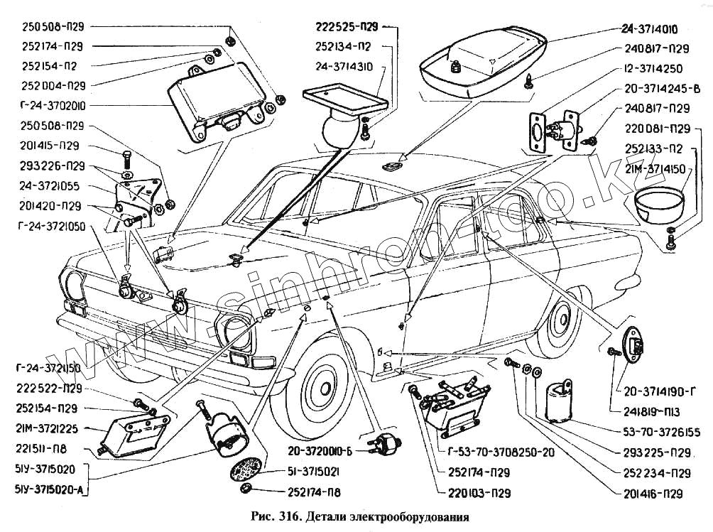 Каталог запасных частей к технике: ГАЗ-24. Детали электрооборудования