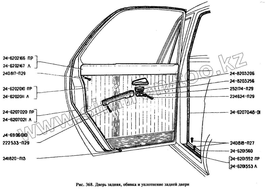 Каталог запасных частей к технике: ГАЗ-24. Дверь задняя, обивка и уплотнение задней двери