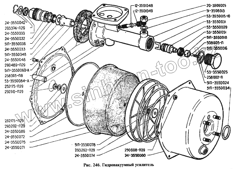Каталог запасных частей к технике: ГАЗ-24. Гидровакуумный усилитель