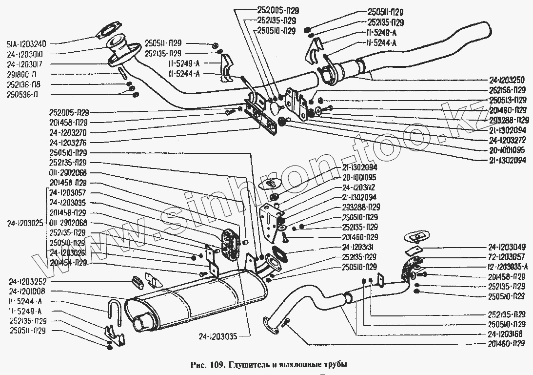 Каталог запасных частей к технике: ГАЗ-24. Глушитель и выхлопные трубы