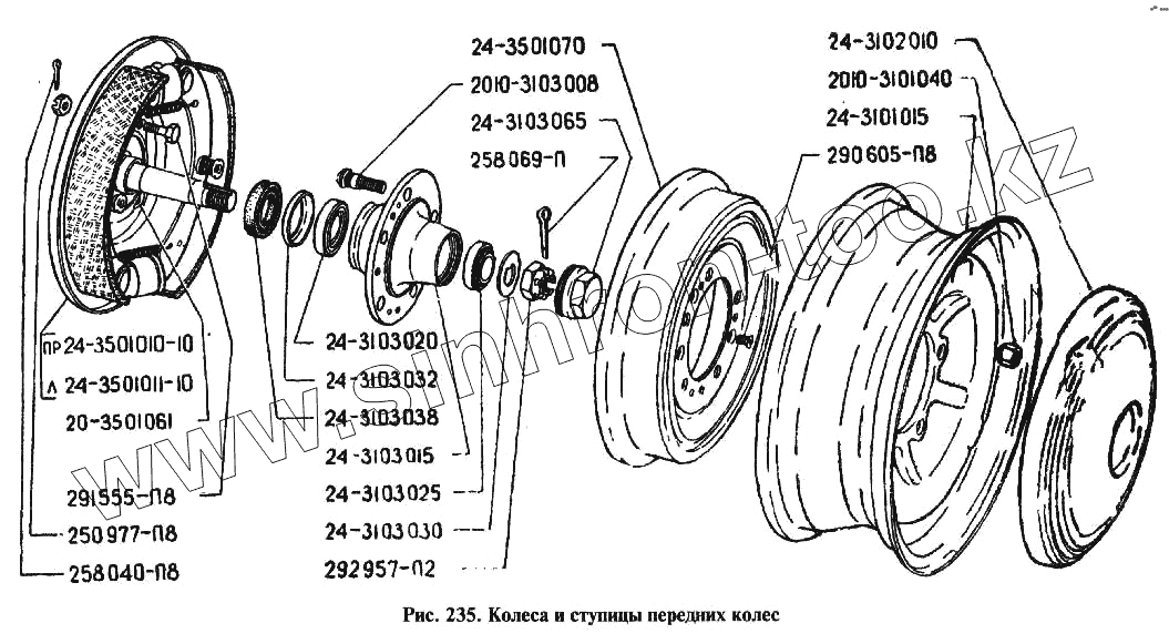 Каталог запасных частей к технике: ГАЗ-24. Колеса и ступицы передних колес