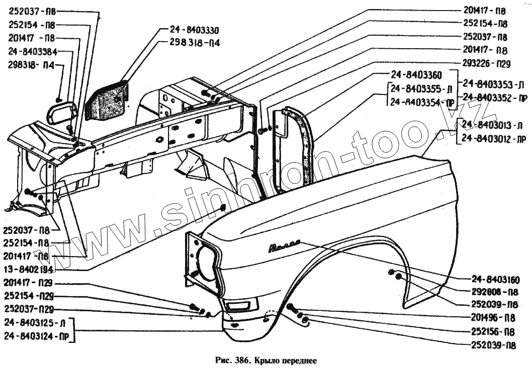 Каталог запасных частей к технике: ГАЗ-24. Крыло переднее