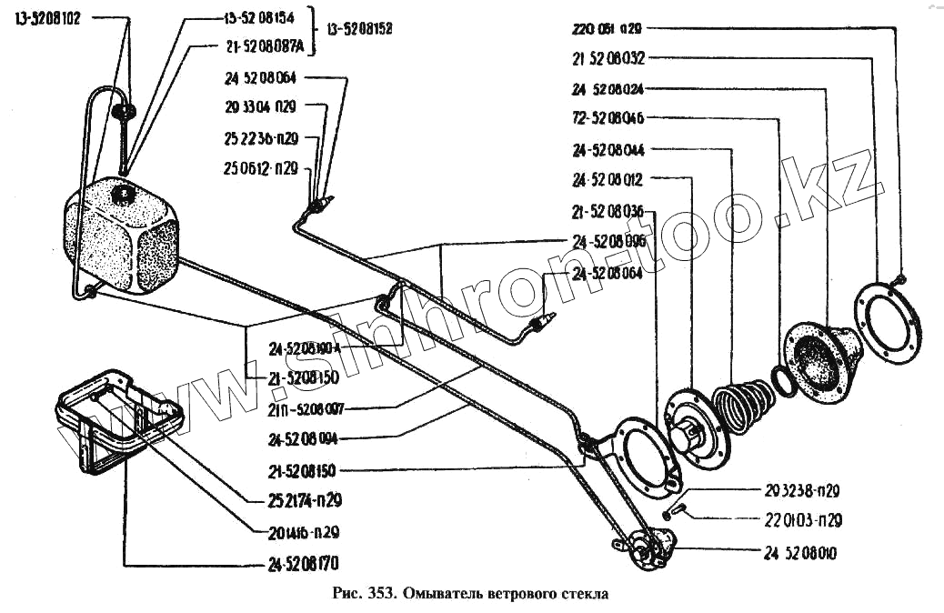 Каталог запасных частей к технике: ГАЗ-24. Омыватель ветрового стекла