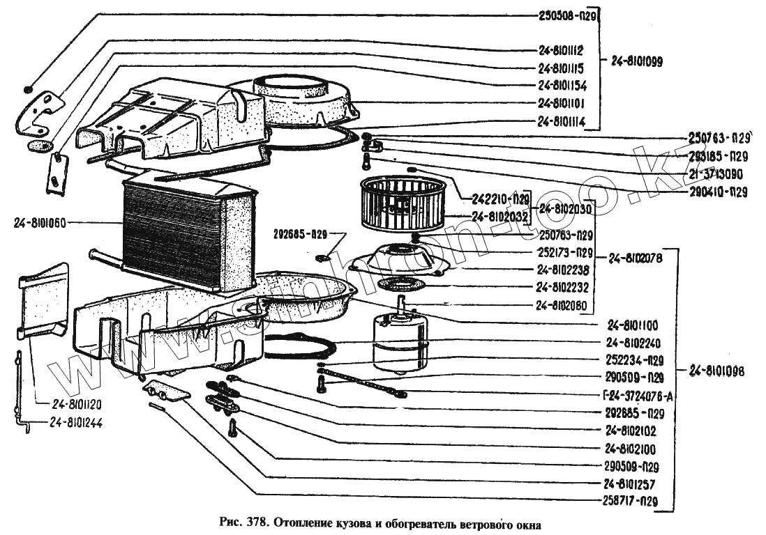 Каталог запасных частей к технике: ГАЗ-24. Отопитель кузова и обогреватель ветрового стекла