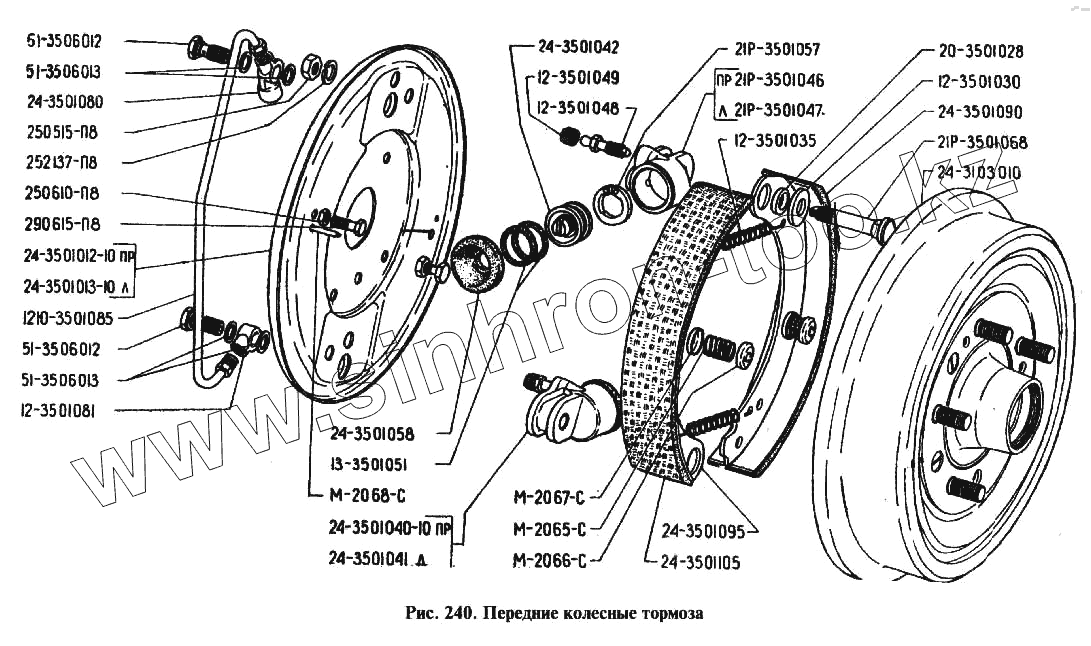 Каталог запасных частей к технике: ГАЗ-24. Передние колесные тормоза