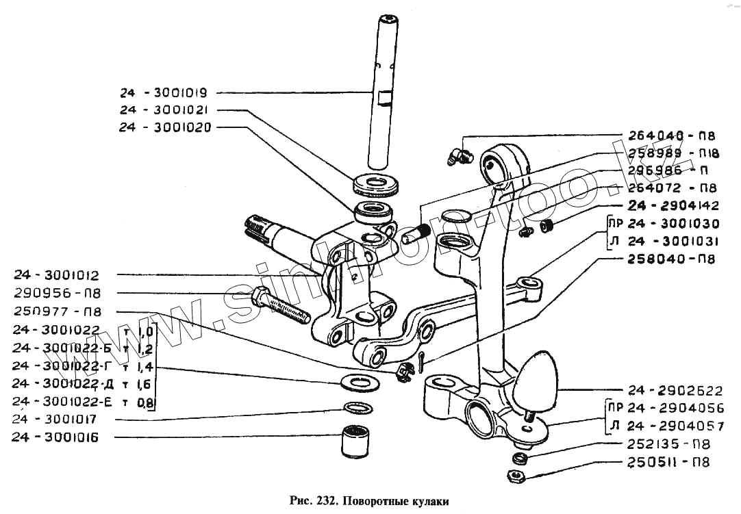 Каталог запасных частей к технике: ГАЗ-24. Поворотные кулаки