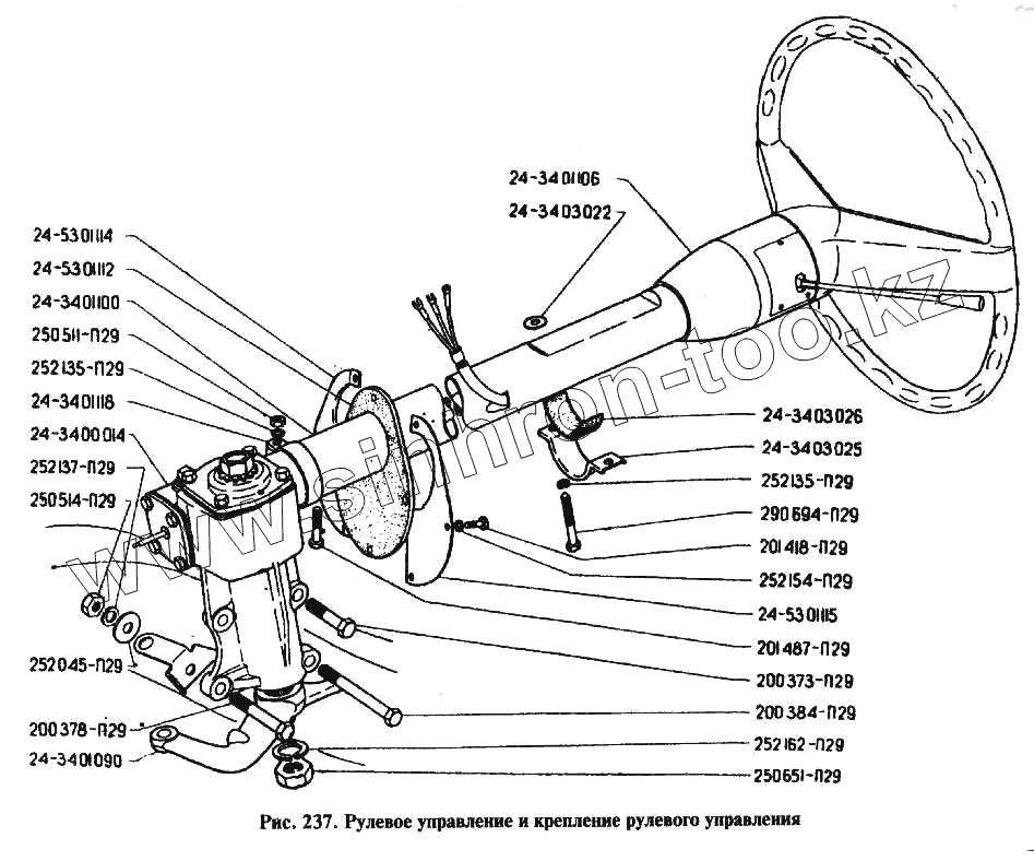 Каталог запасных частей к технике: ГАЗ-24. Рулевое управление и крепление рулевого управления